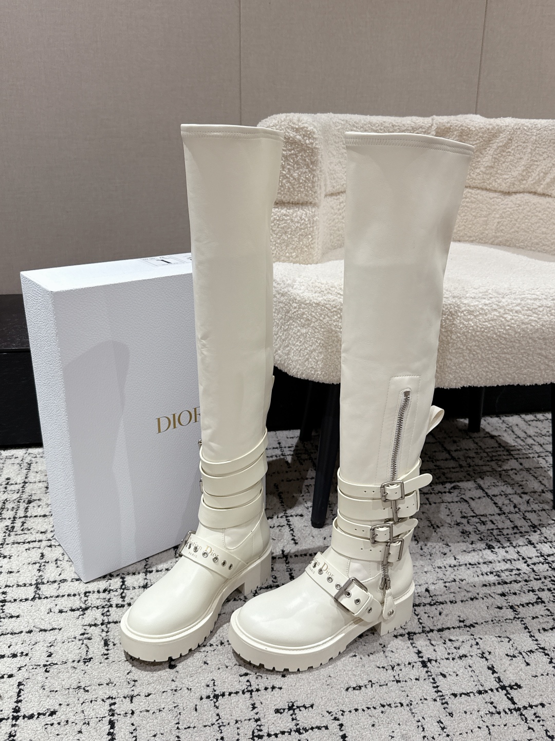 ディオール トゥルーレ ブーツ ホワイト 1色 🧡 細部までこだわった高級感あるデザイン トレンドアイテムとして最適 💫