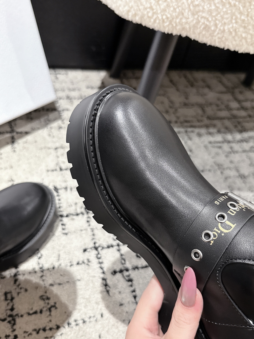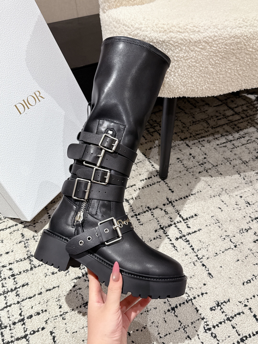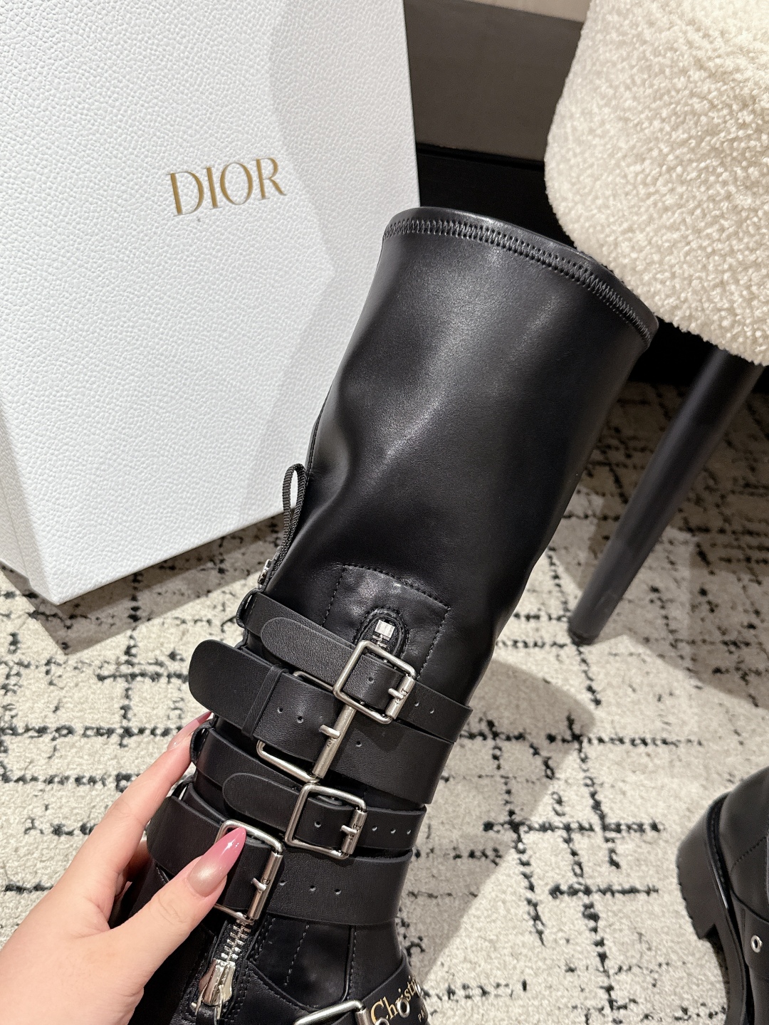 DIOR ブーツ レディース ブラック 本革 ファッション デザイン 時計 ブラック 1足