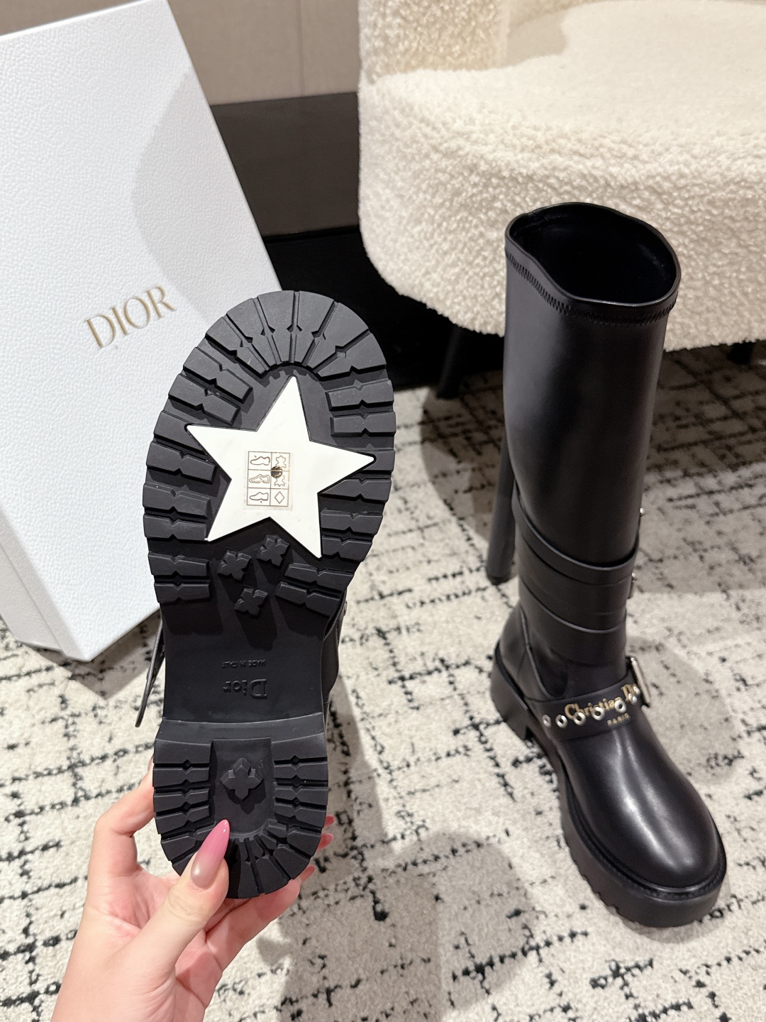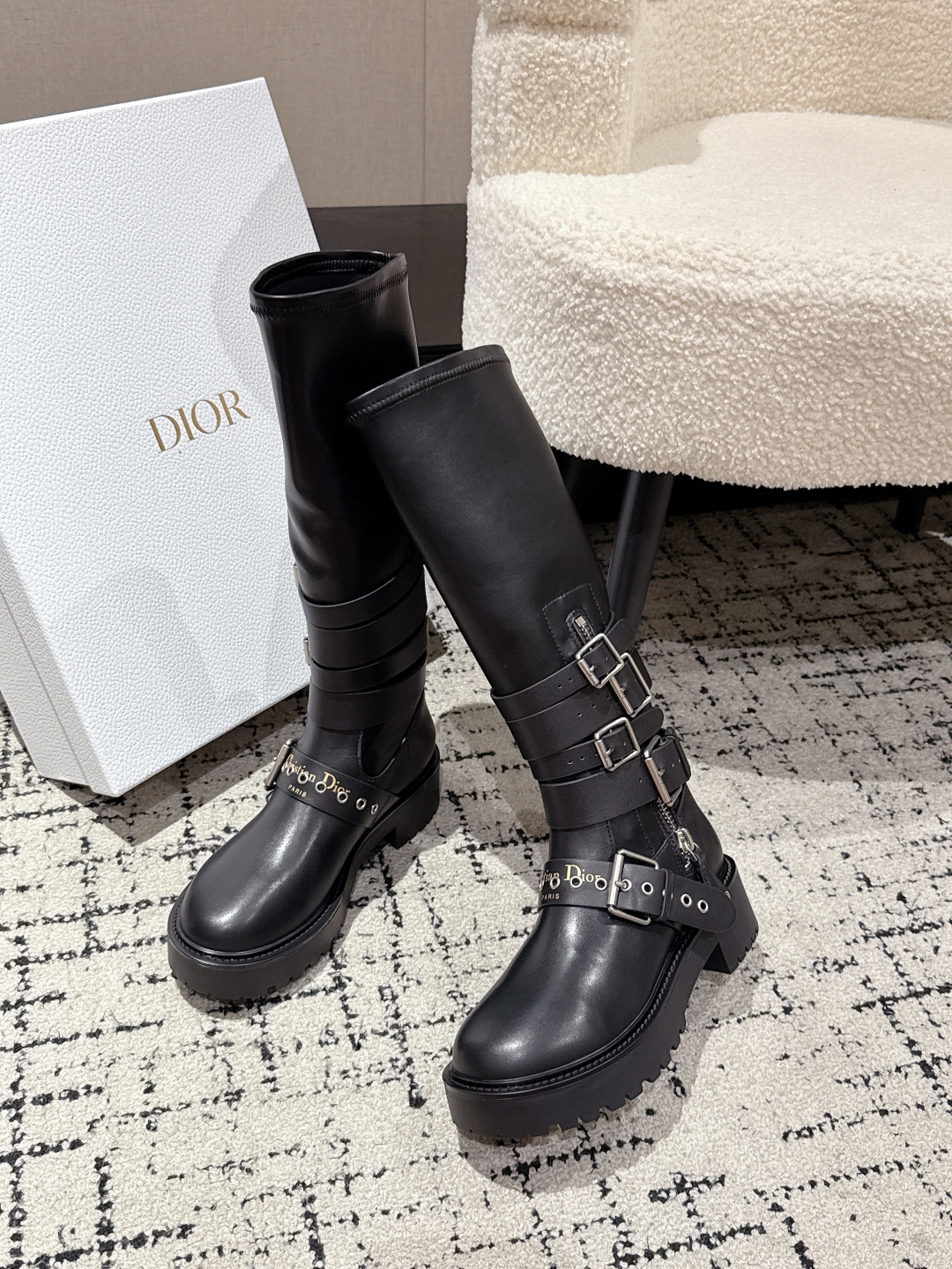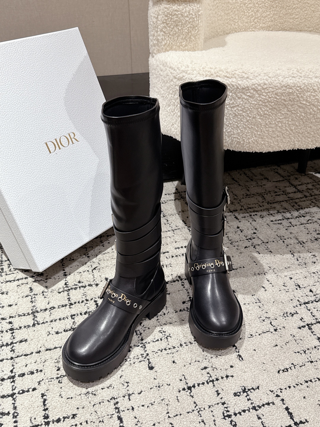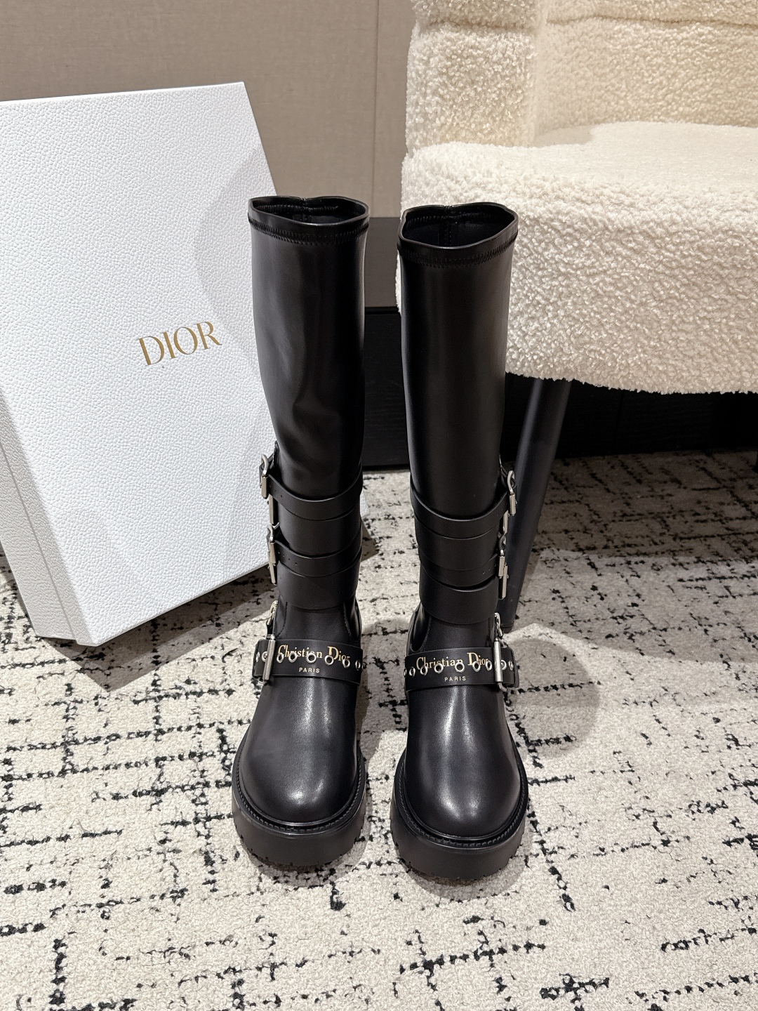 DIOR ブーツ レディース ブラック 本革 ファッション デザイン 時計 ブラック 1足