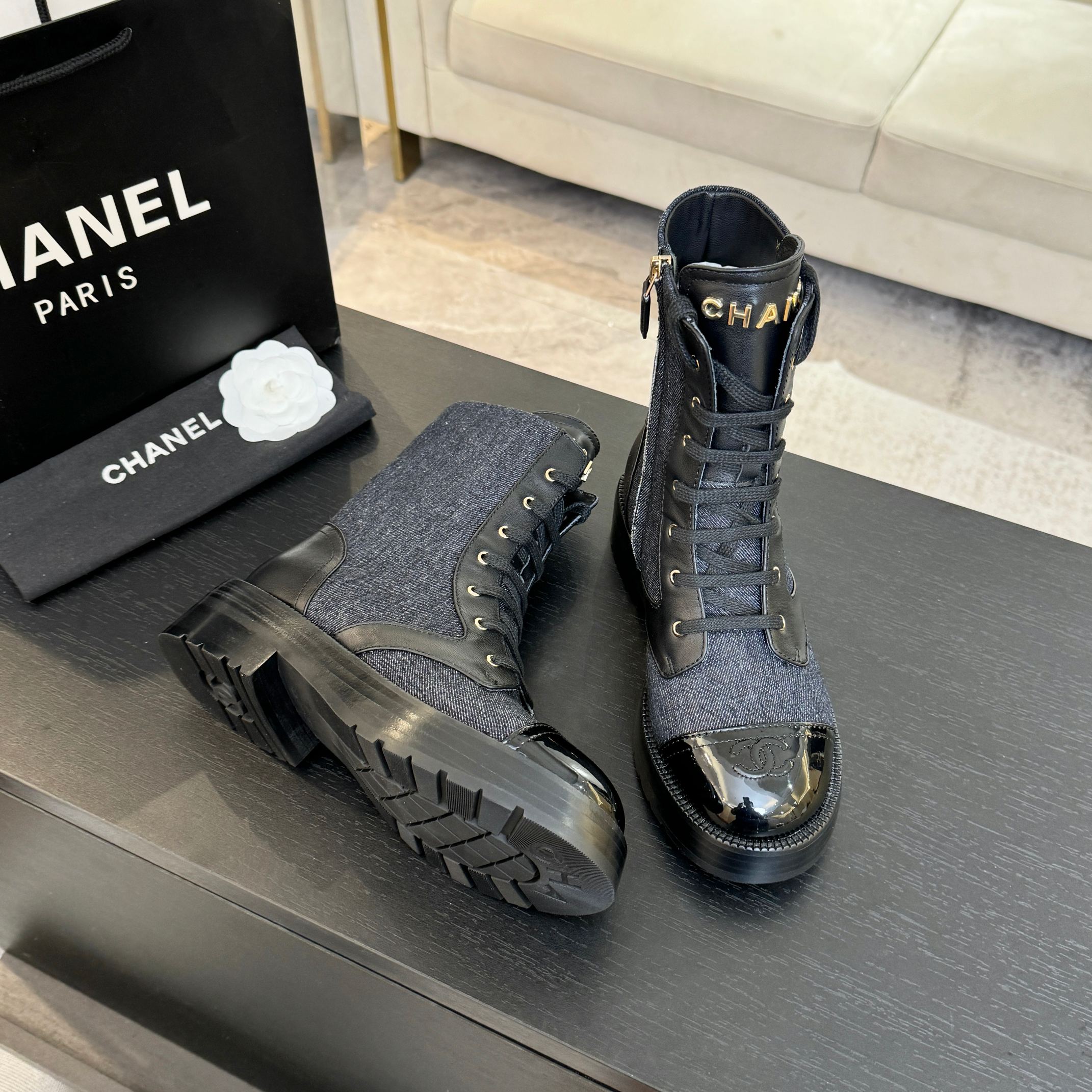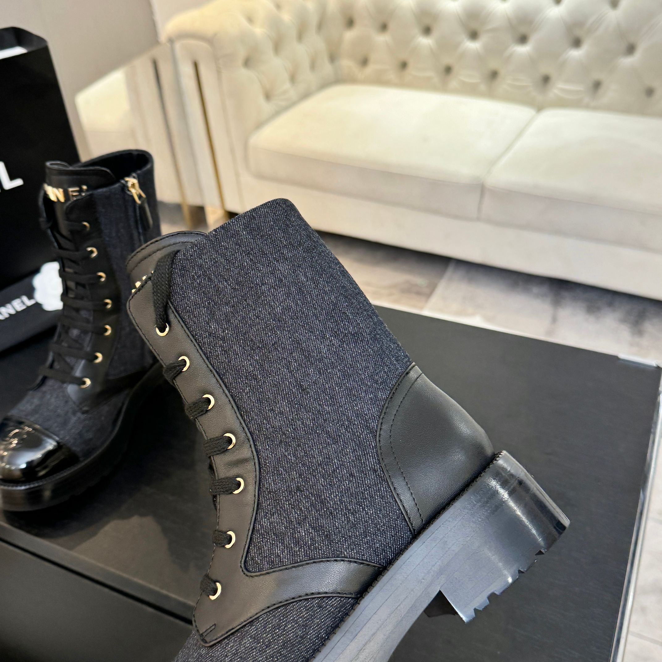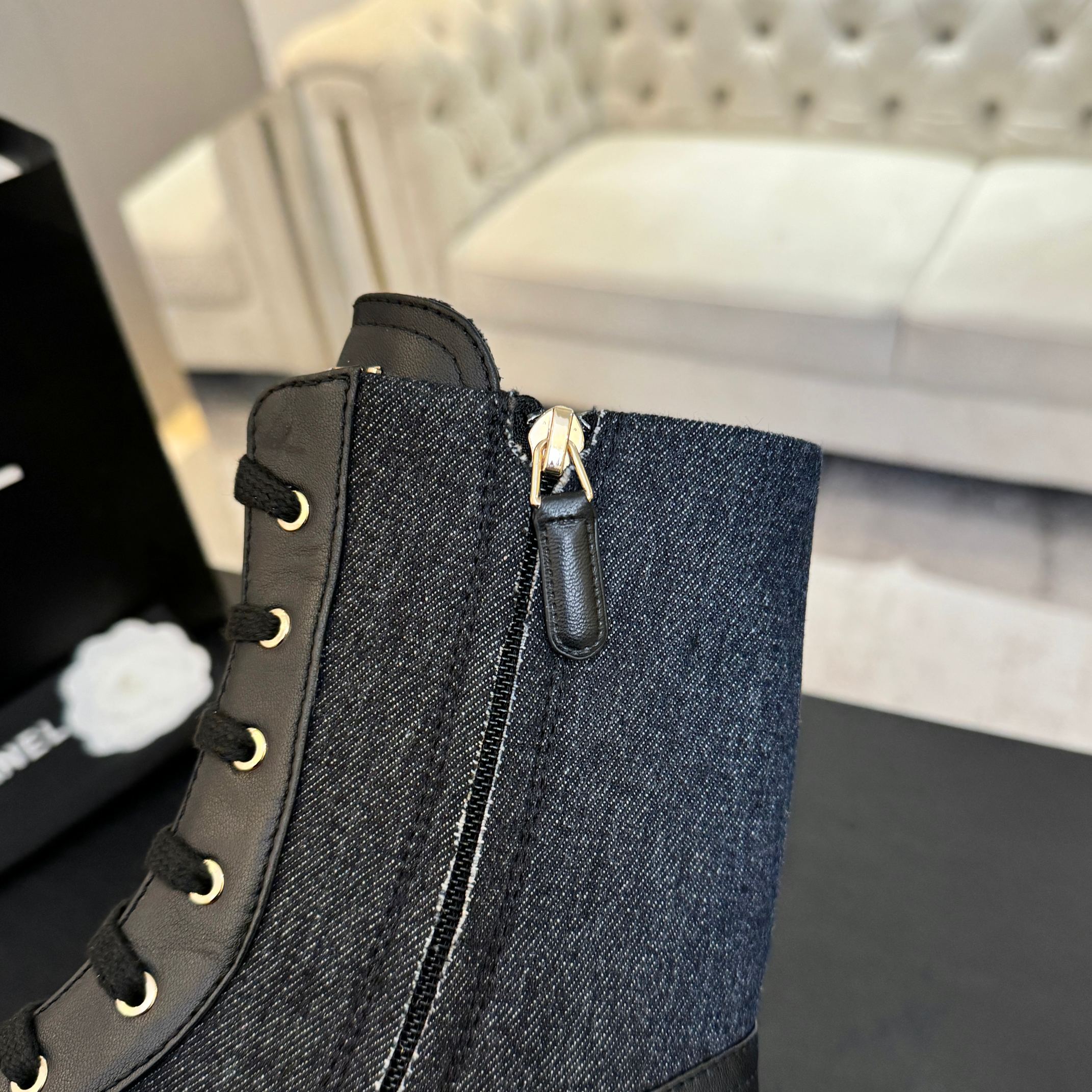 シャネル レディース ブーツ 1色 黒 本革 デニム ファッション レディースシューズ 💎