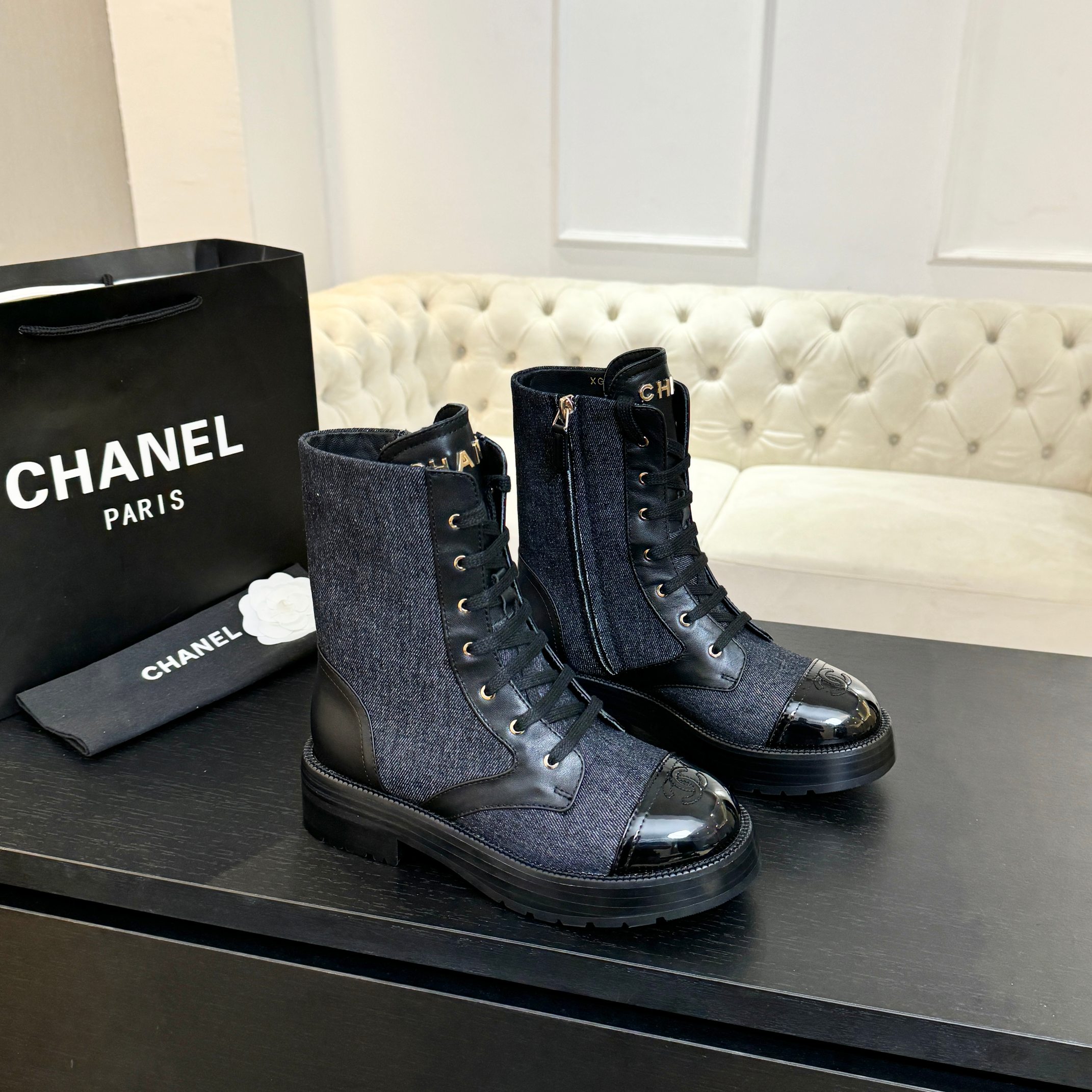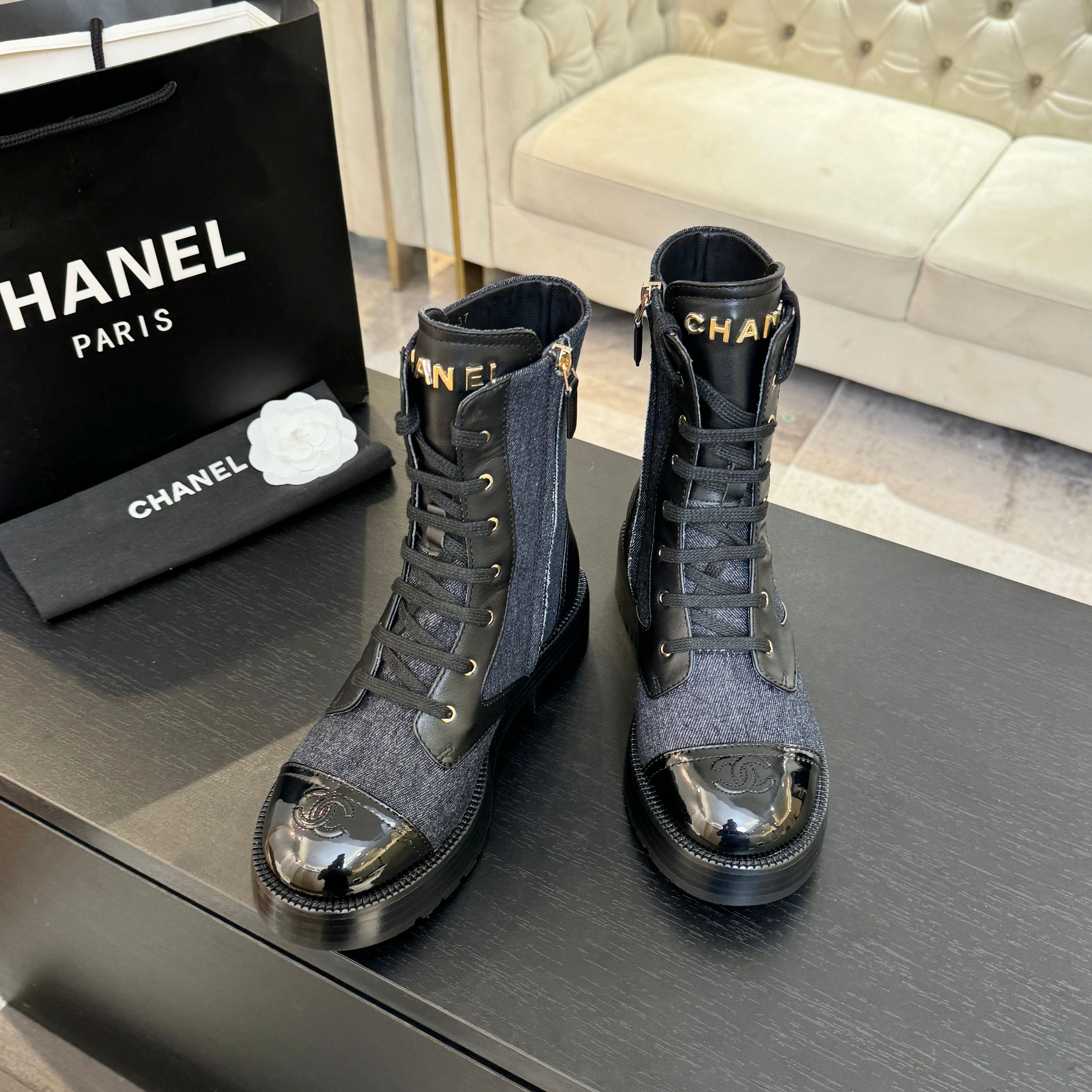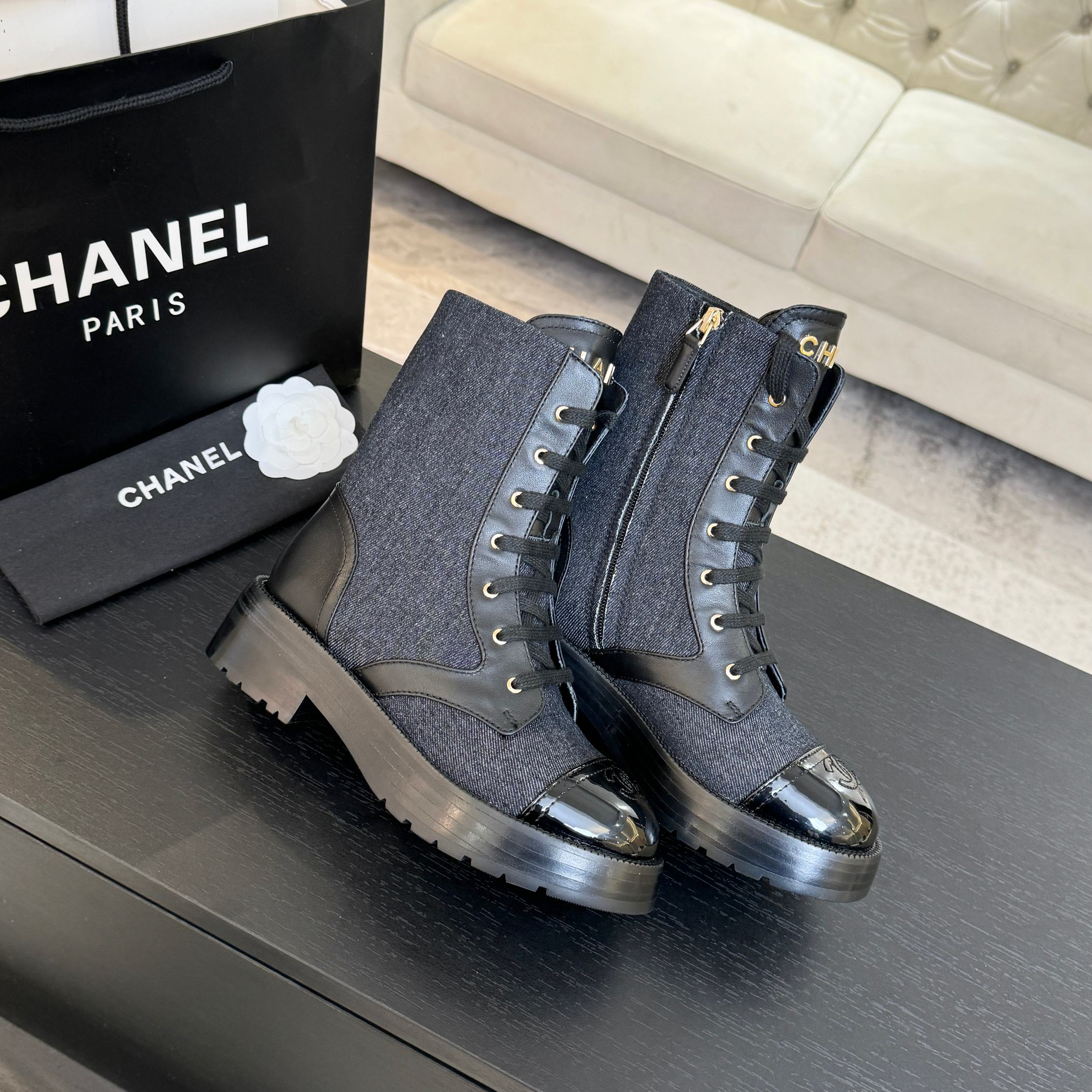 シャネル レディース ブーツ 1色 黒 本革 デニム ファッション レディースシューズ 💎
