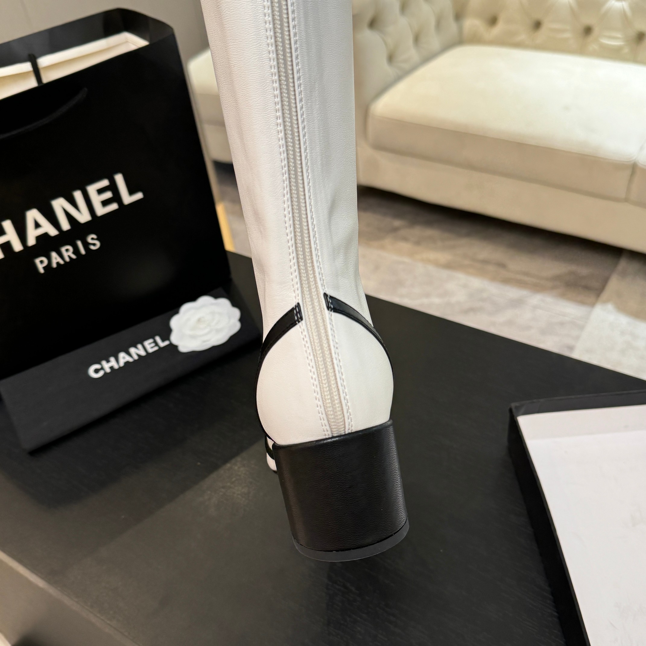 シャネル レディース ブーツ ホワイト ブラック 2トーン ファブリック ヒール ブow オーバーザニー クッション 62字