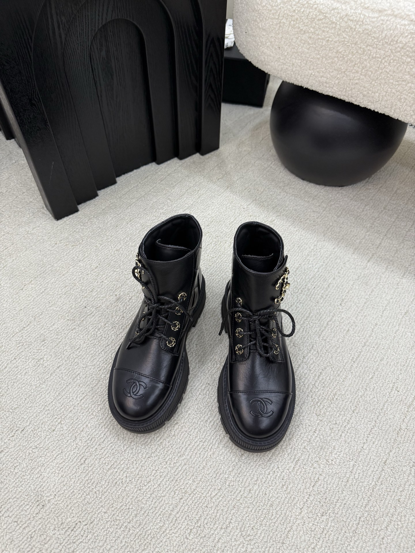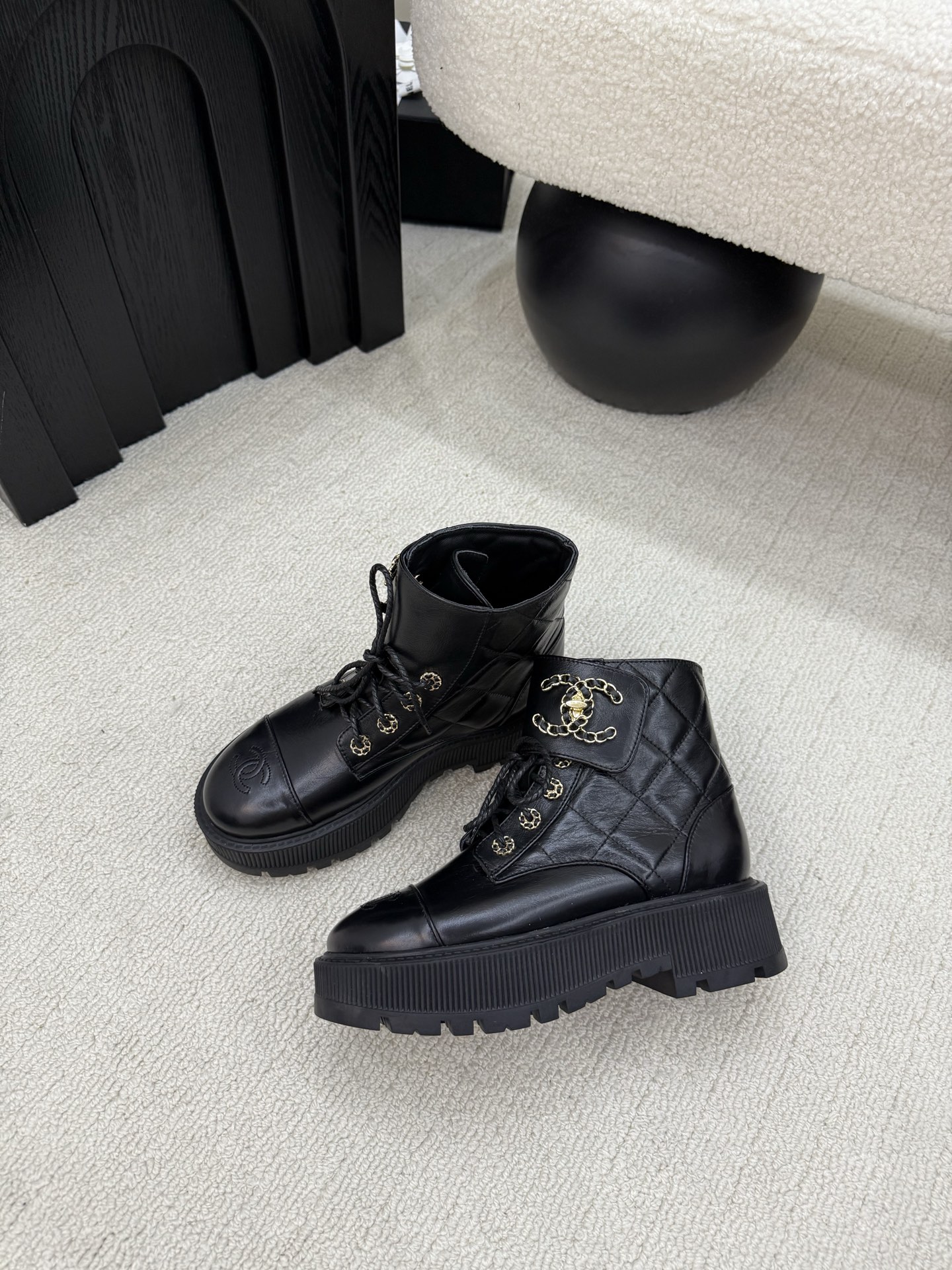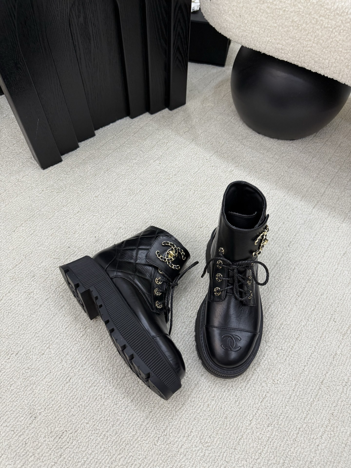 CHANEL ブーツ レディース 黒 ファッション レザー ブロゲ クォーツ シューズ 1足のみ 2足セット 🖤