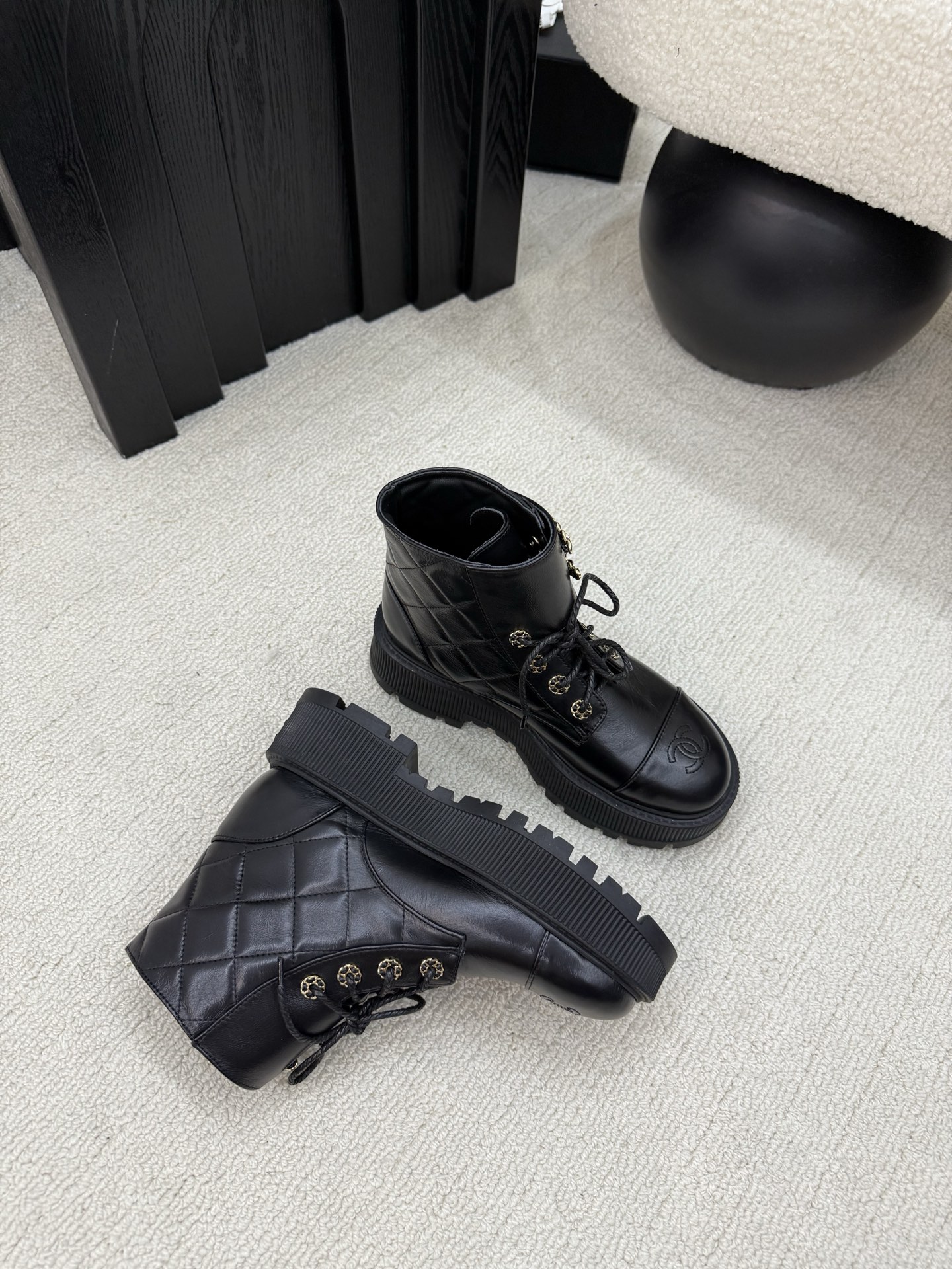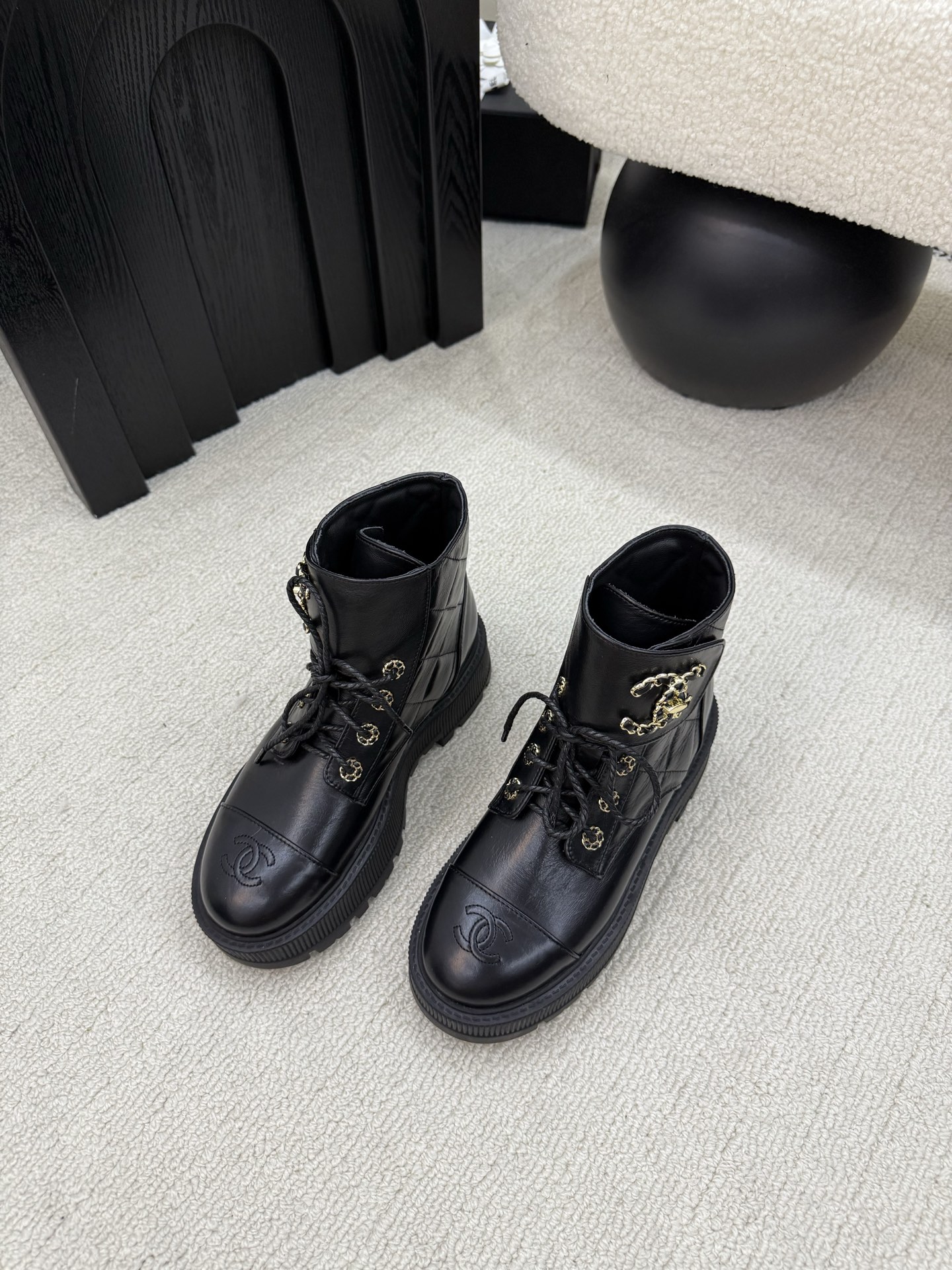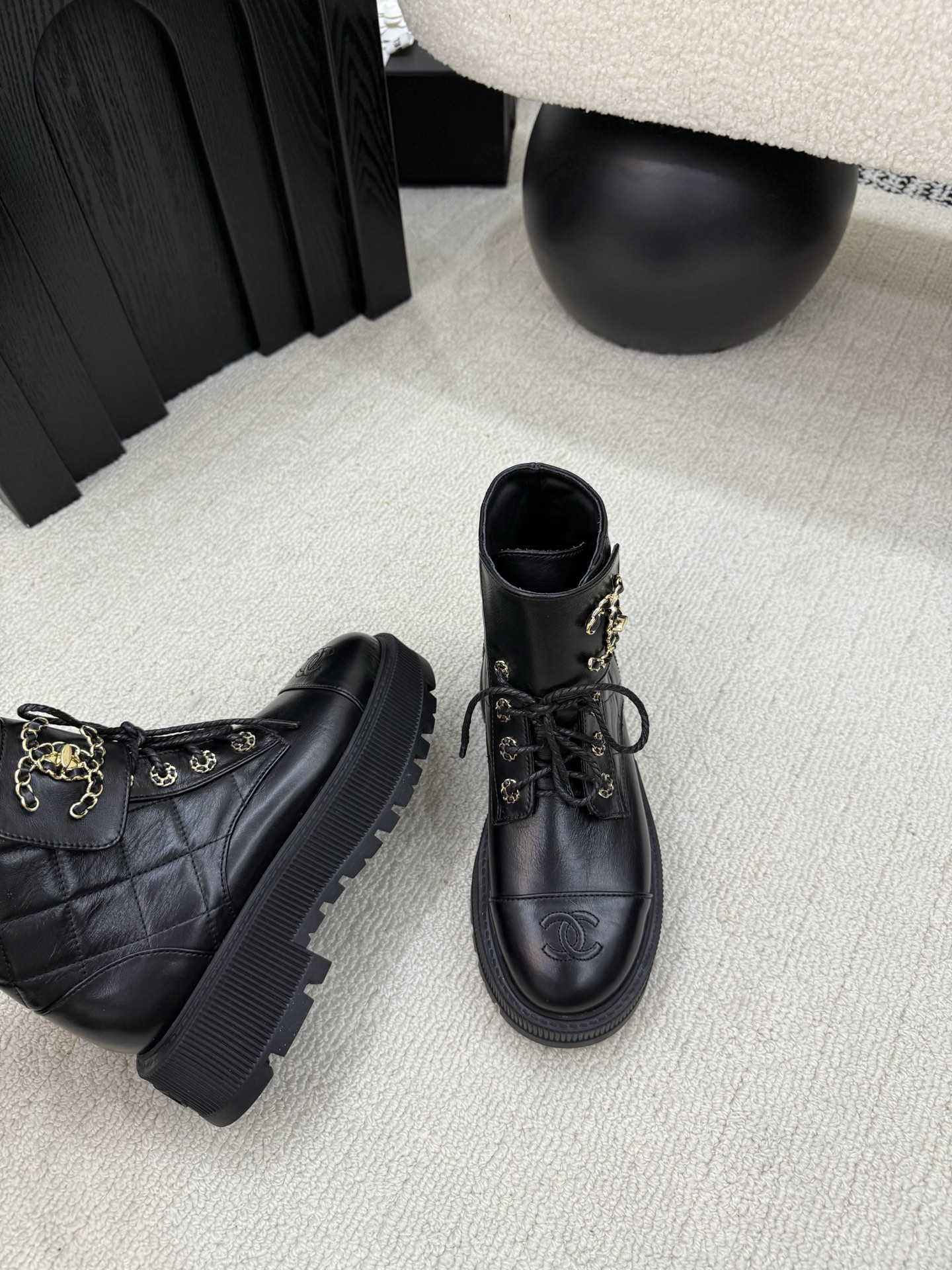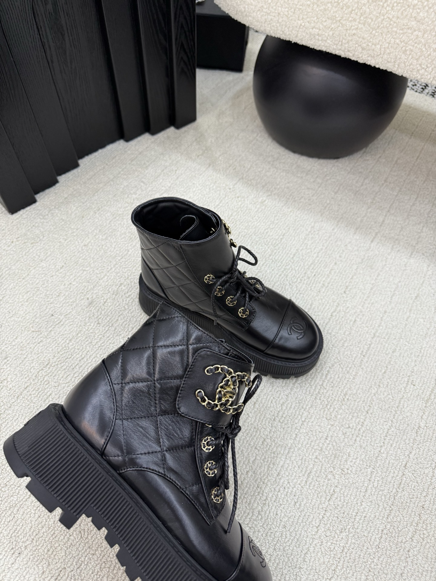 CHANEL ブーツ レディース 黒 ファッション レザー ブロゲ クォーツ シューズ 1足のみ 2足セット 🖤