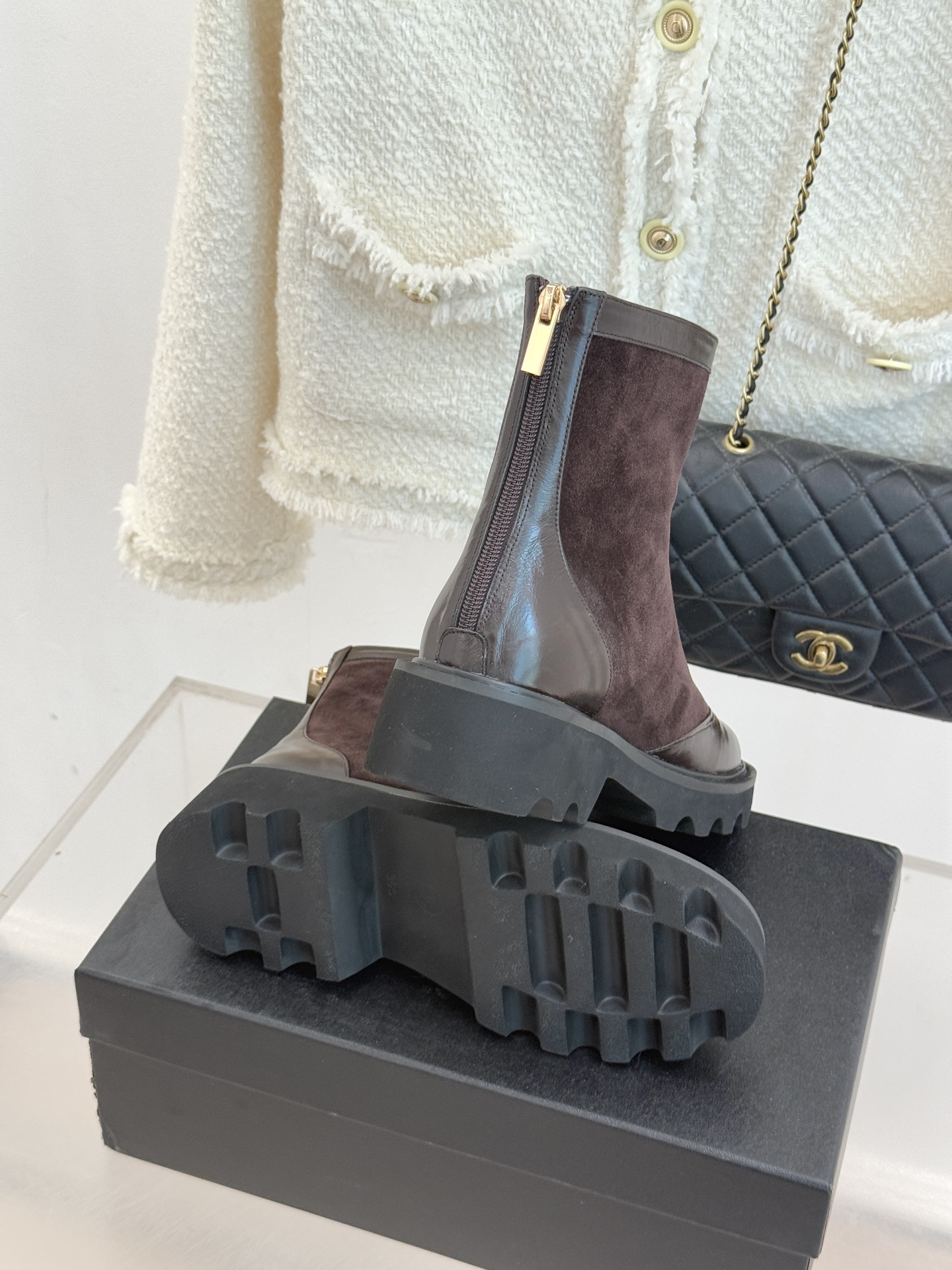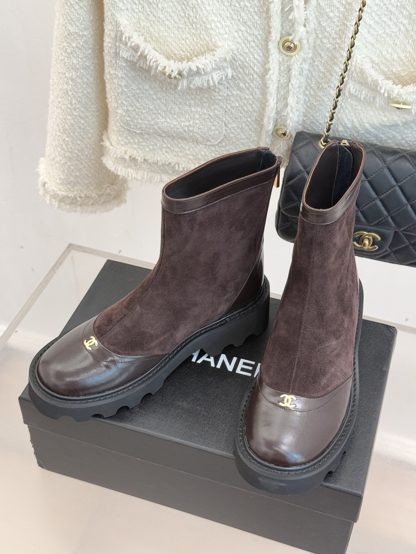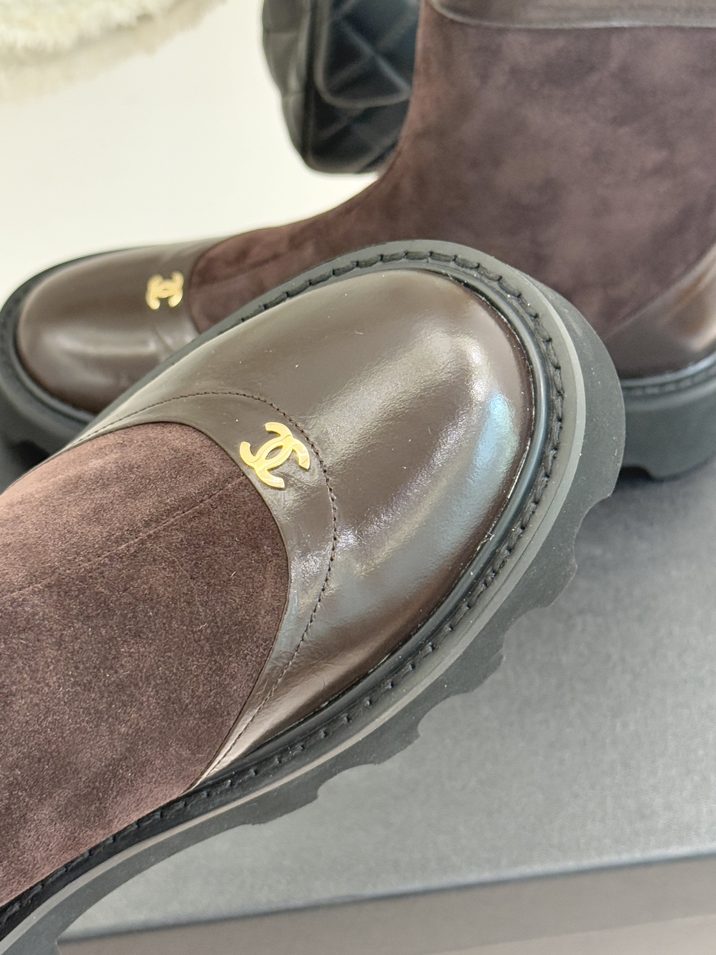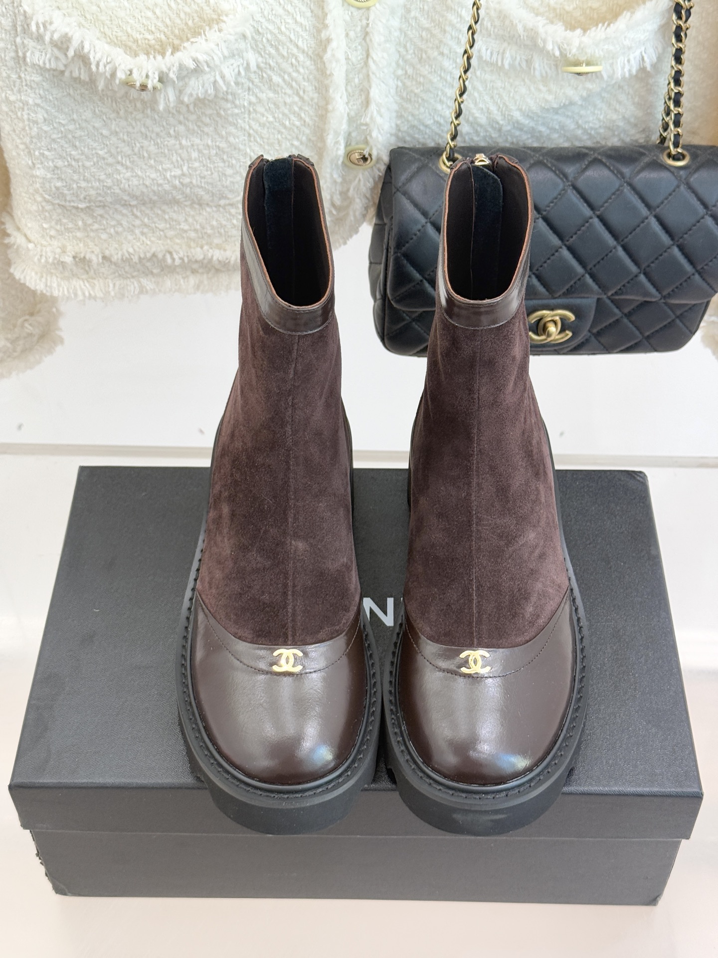 シャネル レディース ブーツ ブラウン スエード ローファー風 プラットフォーム シューズ 1足2色 腰履き ブーツ 🖤