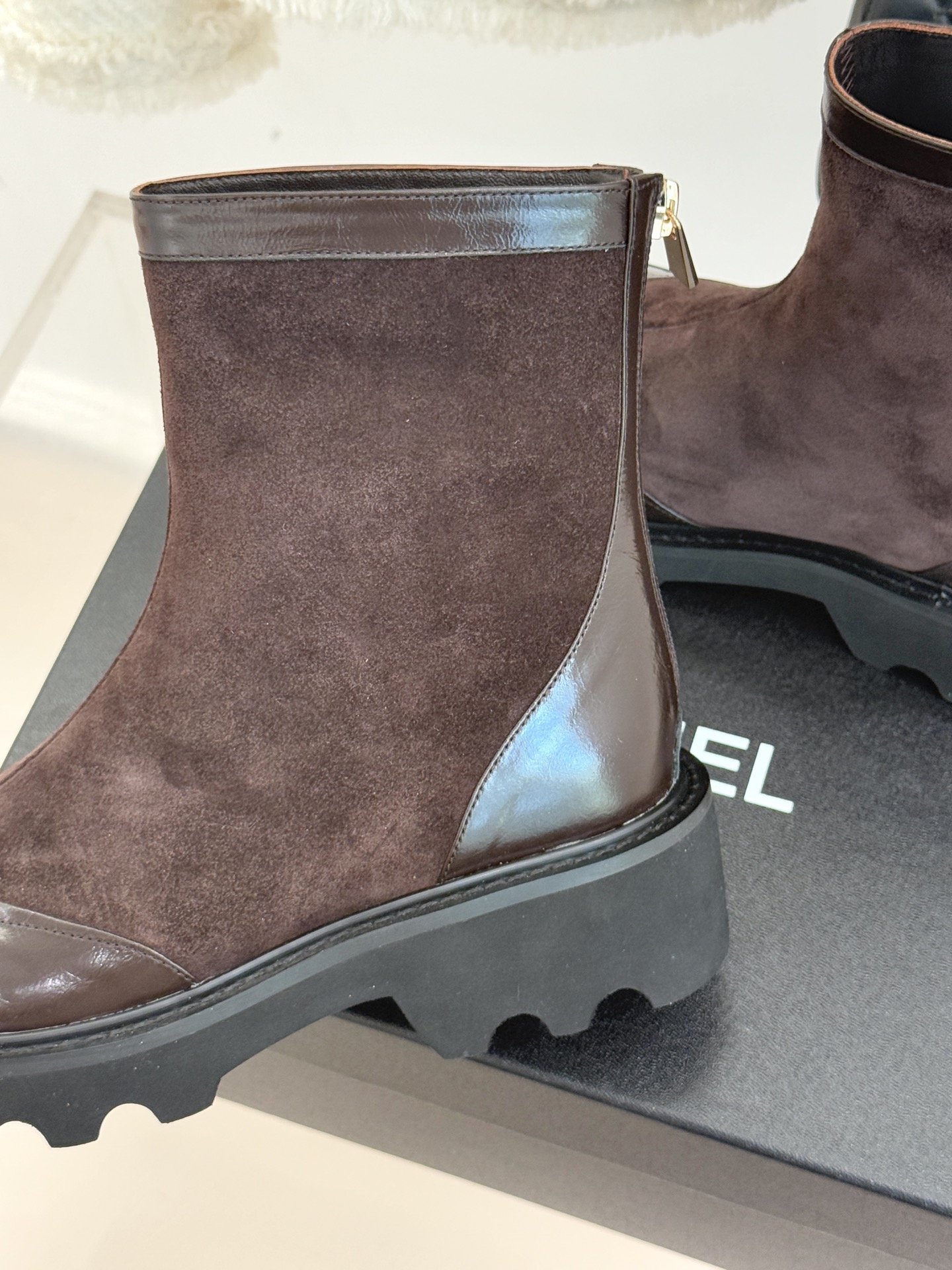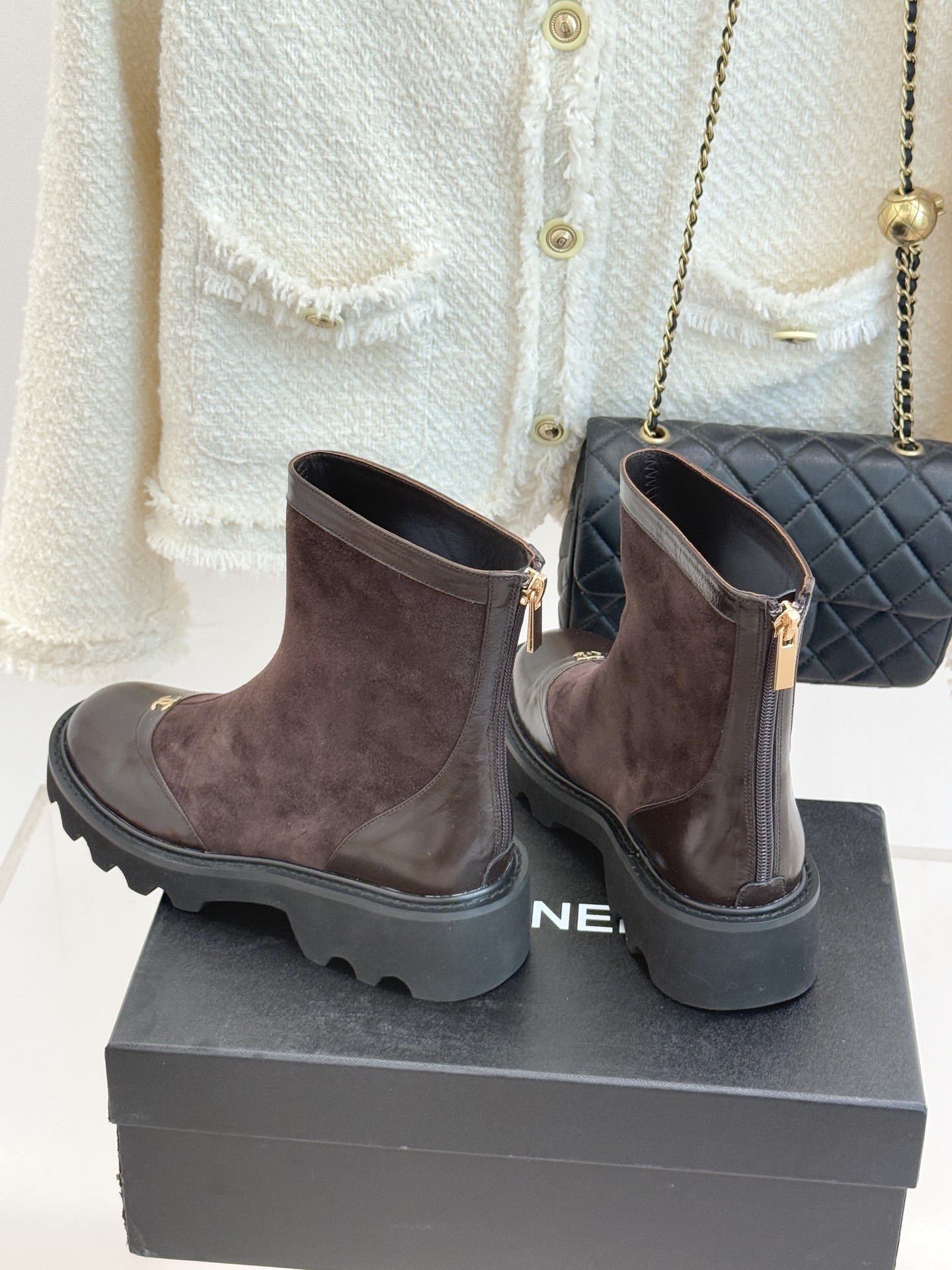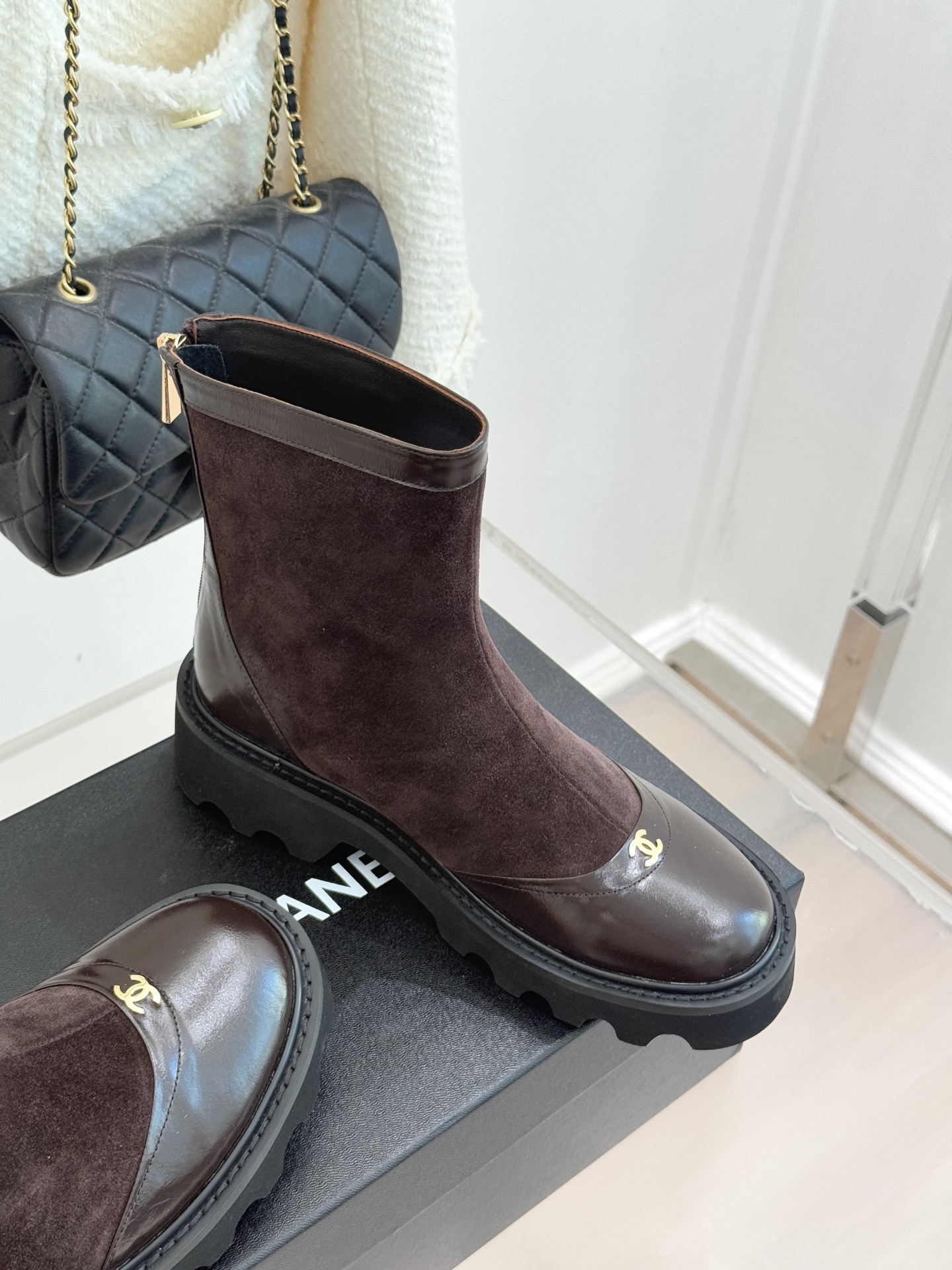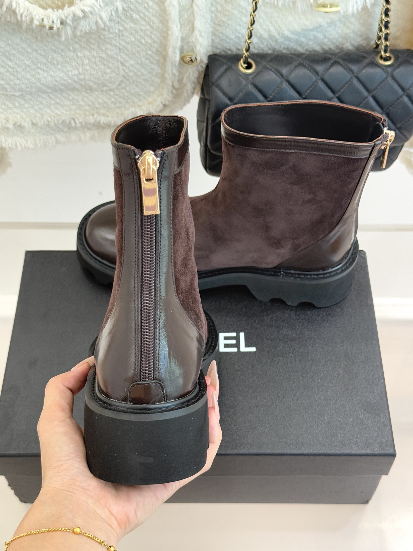 シャネル レディース ブーツ ブラウン スエード ローファー風 プラットフォーム シューズ 1足2色 腰履き ブーツ 🖤
