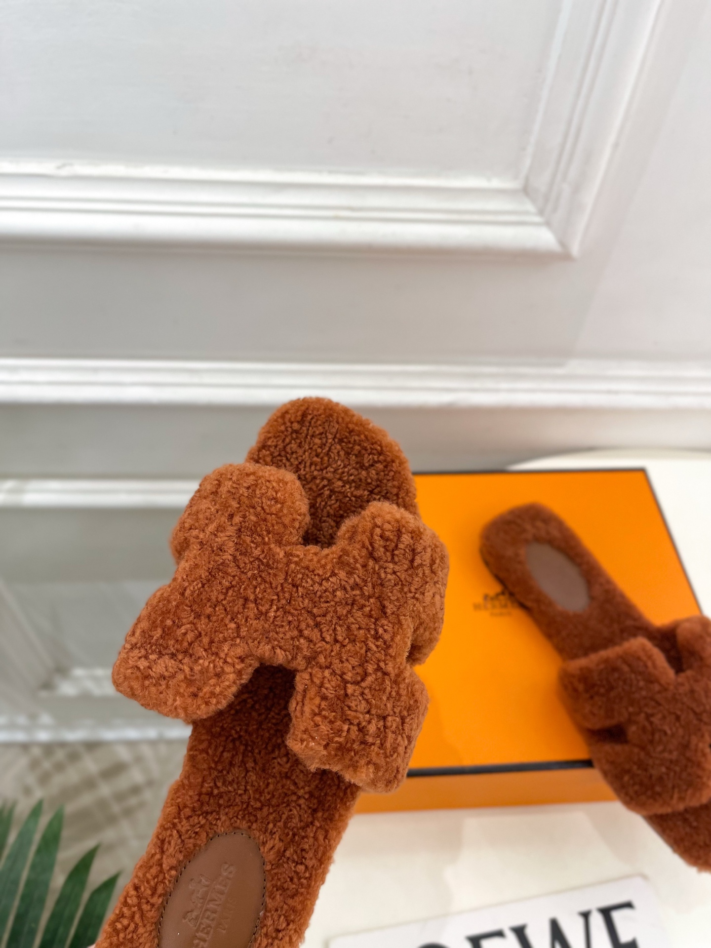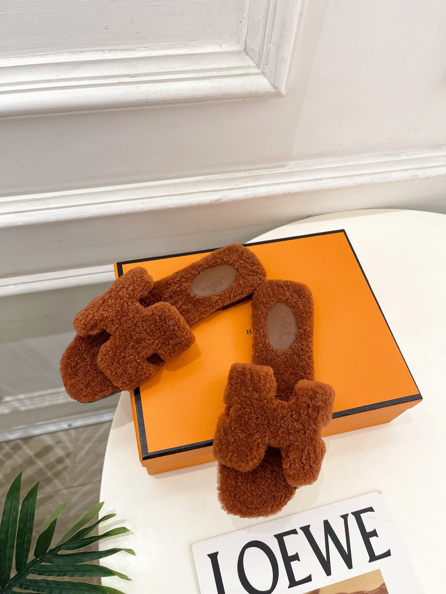 エレガントなHERMSのレディースフラットシューズ、ブラウン色。これほど柔らかい素材のフラットシューズは、長時間の着用でも足が疲れにくいのが特徴です。
