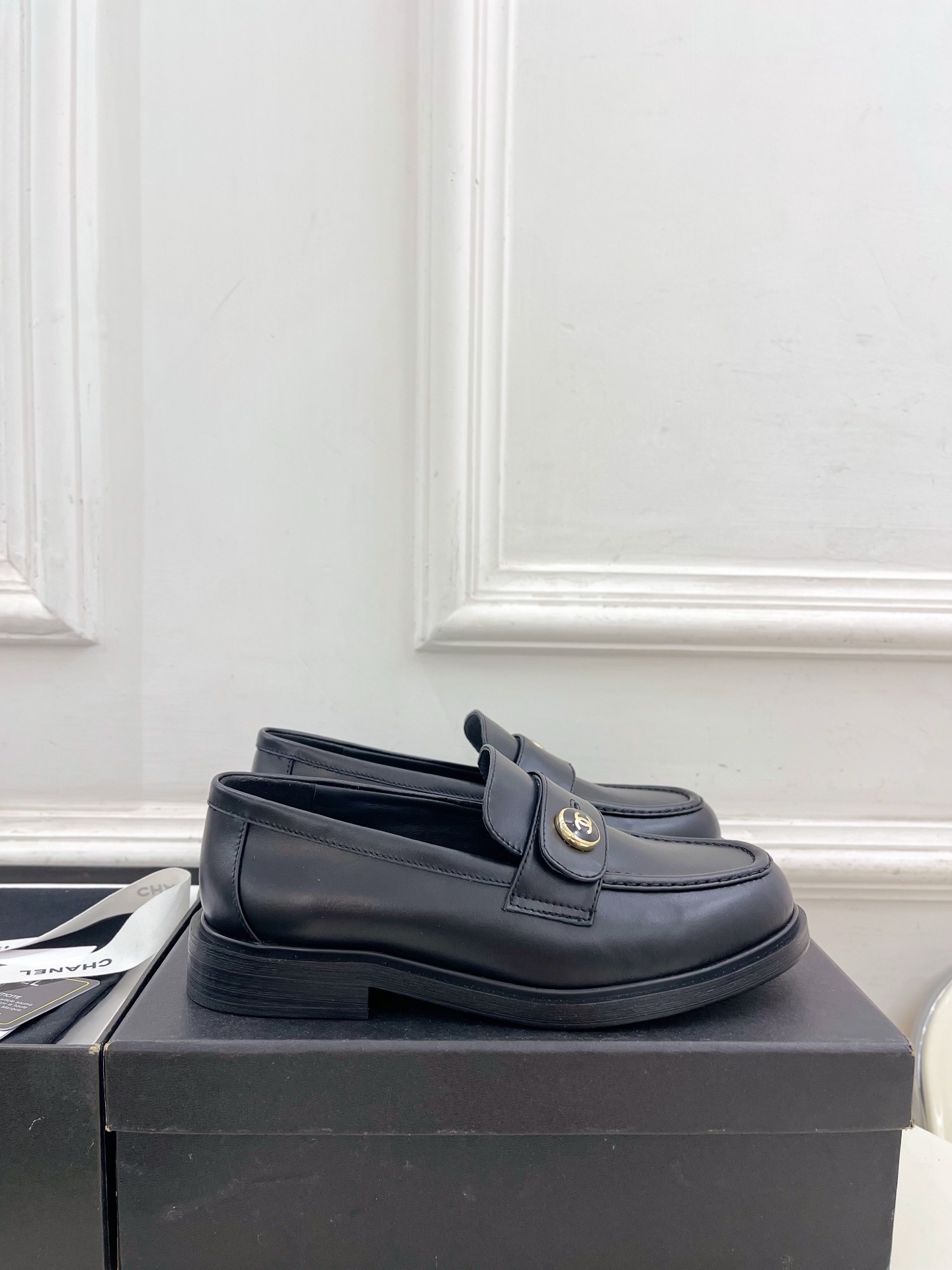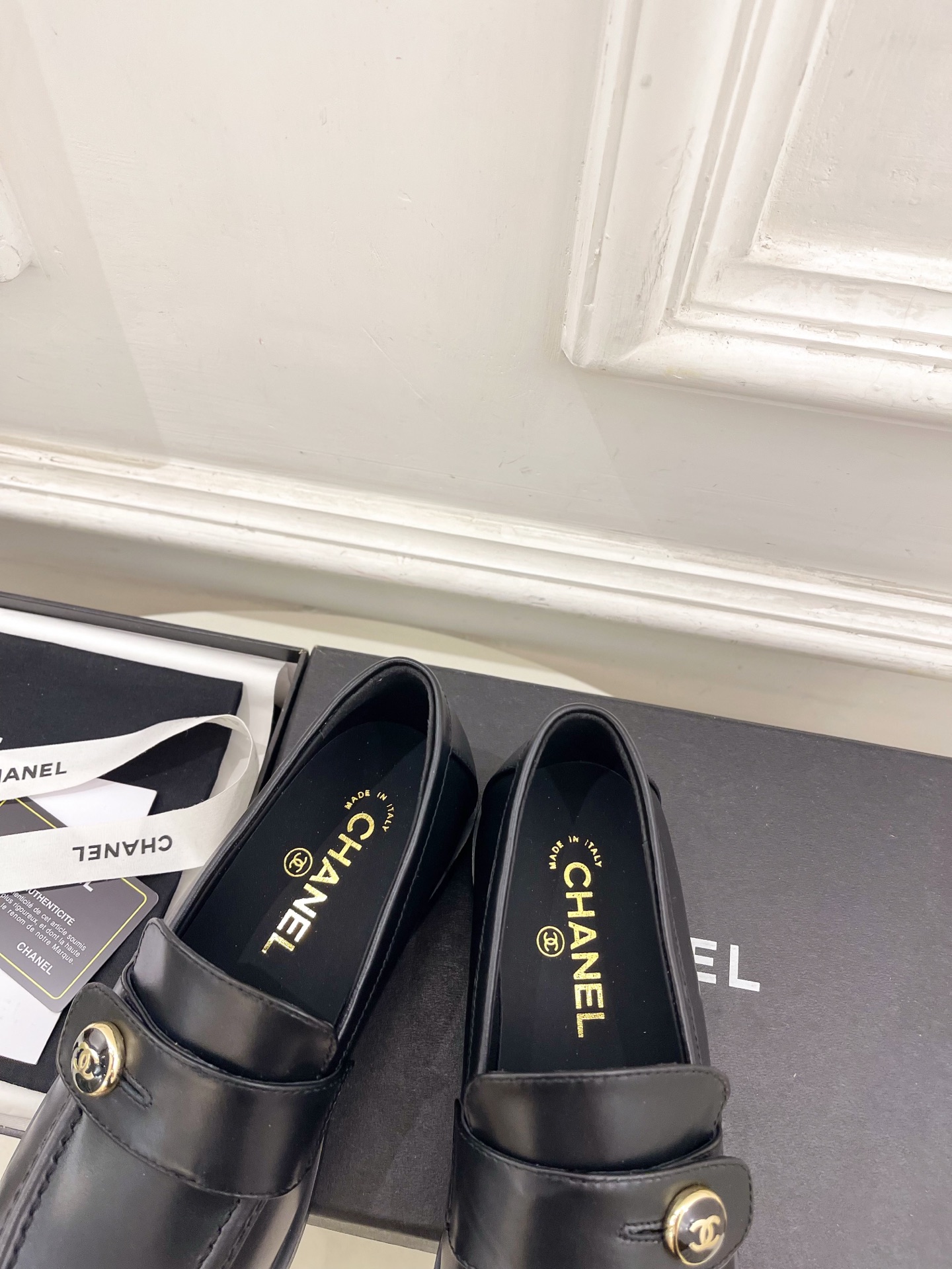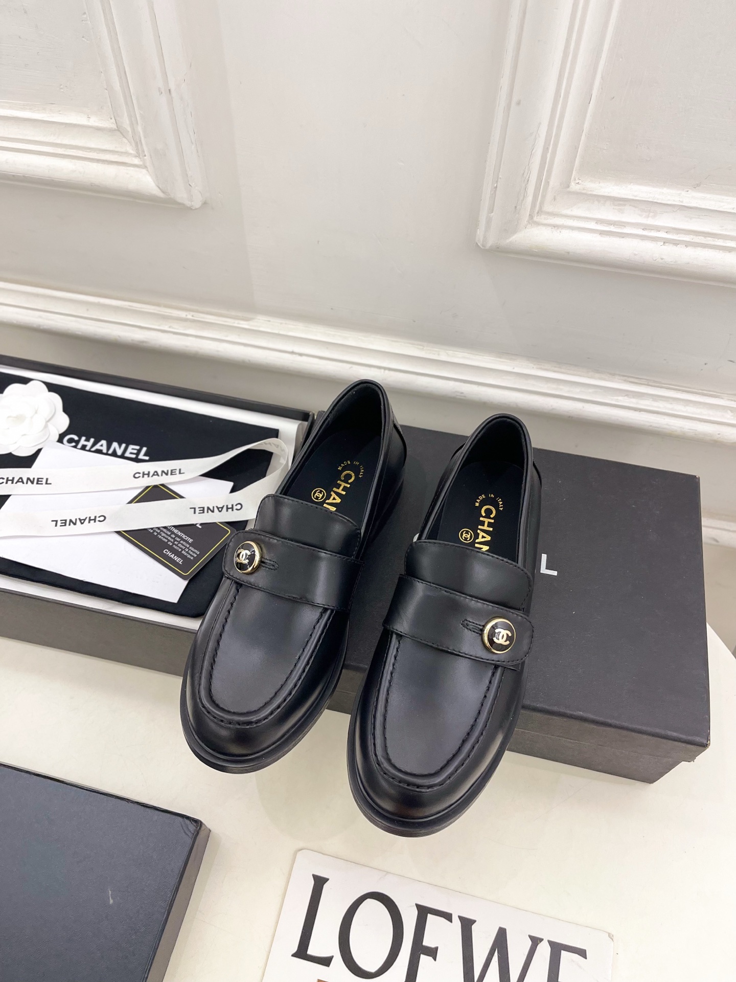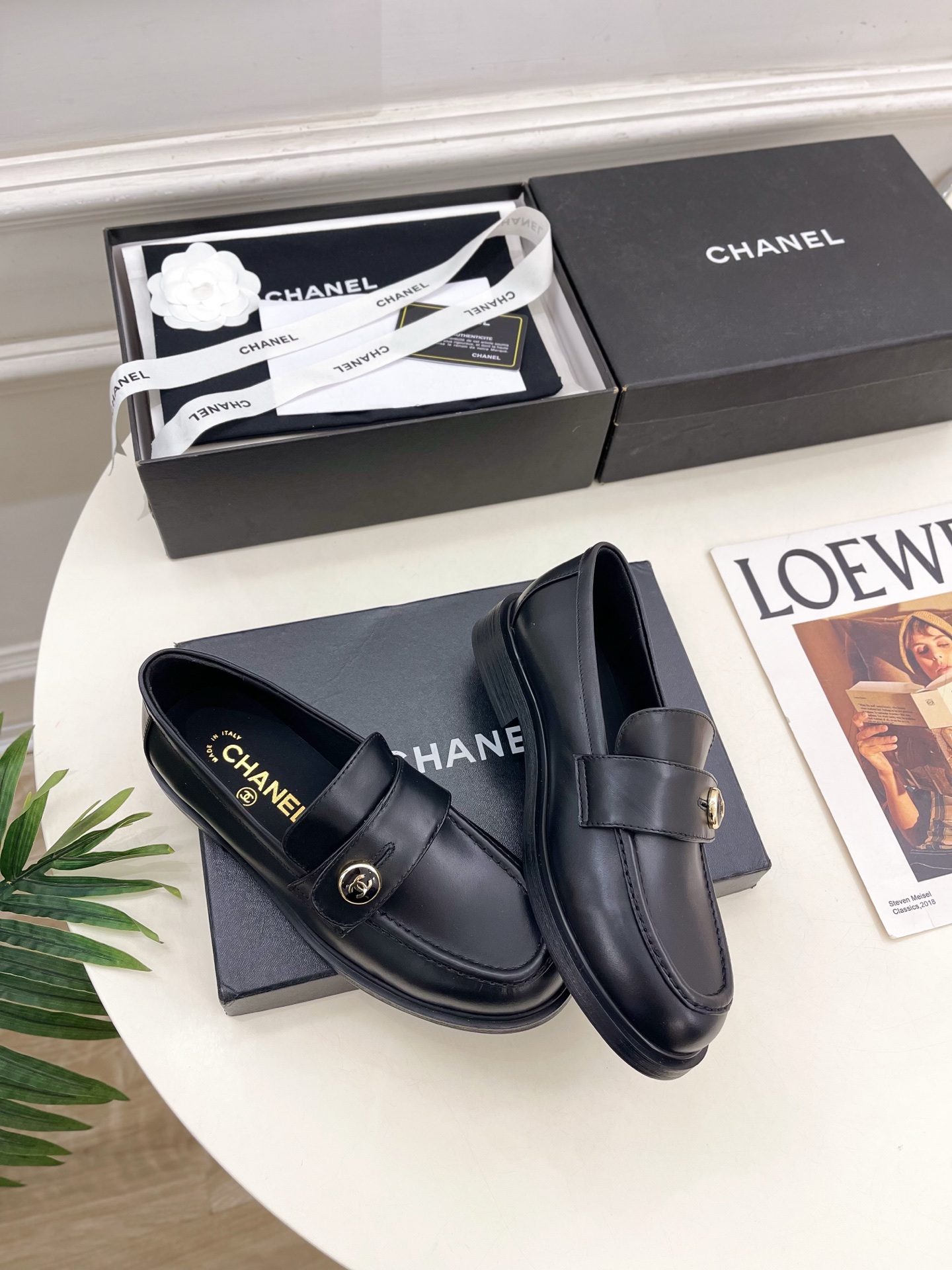 CHANEL ローファー 黒 レディース靴 革製 シンプルデザイン MADE IN ITALY