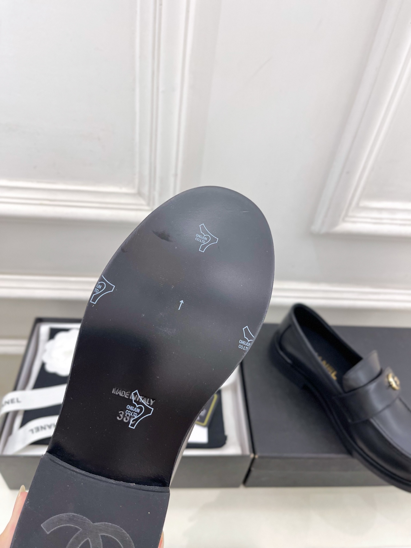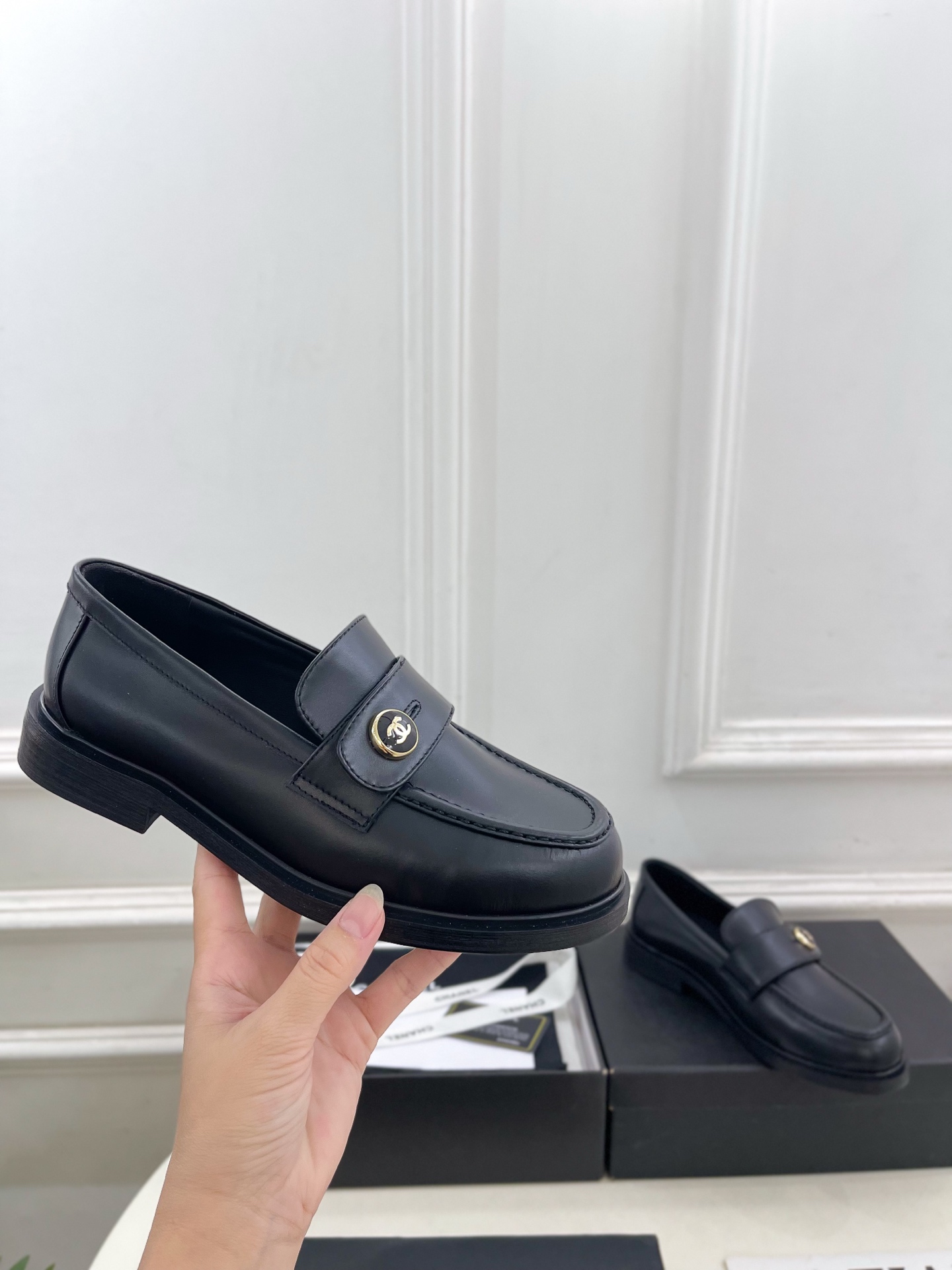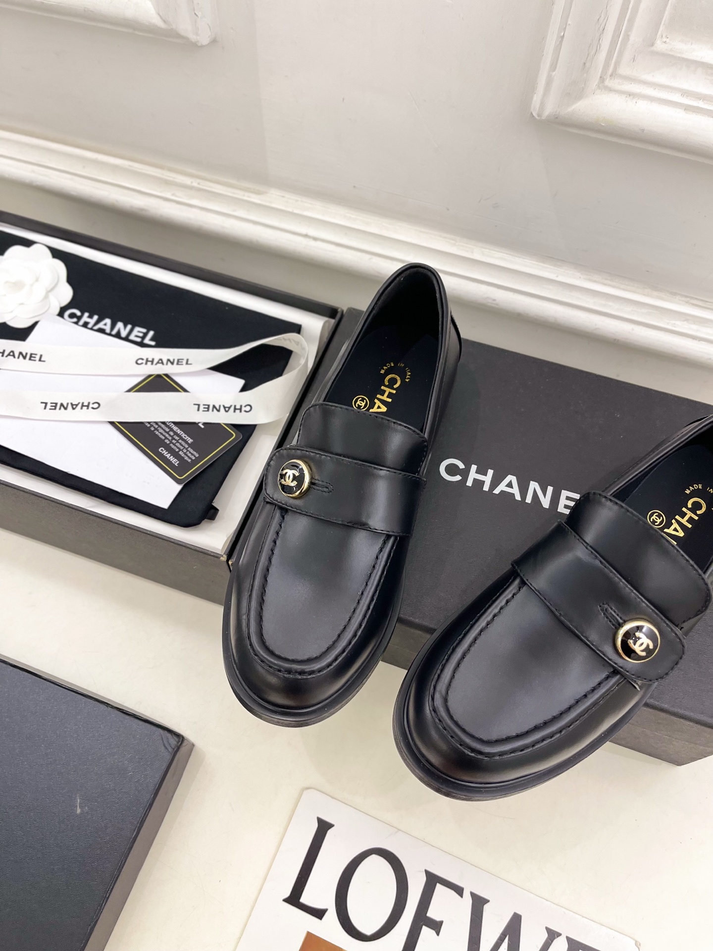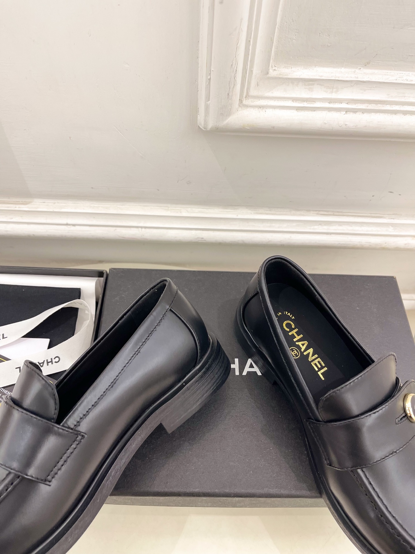 CHANEL ローファー 黒 レディース靴 革製 シンプルデザイン MADE IN ITALY