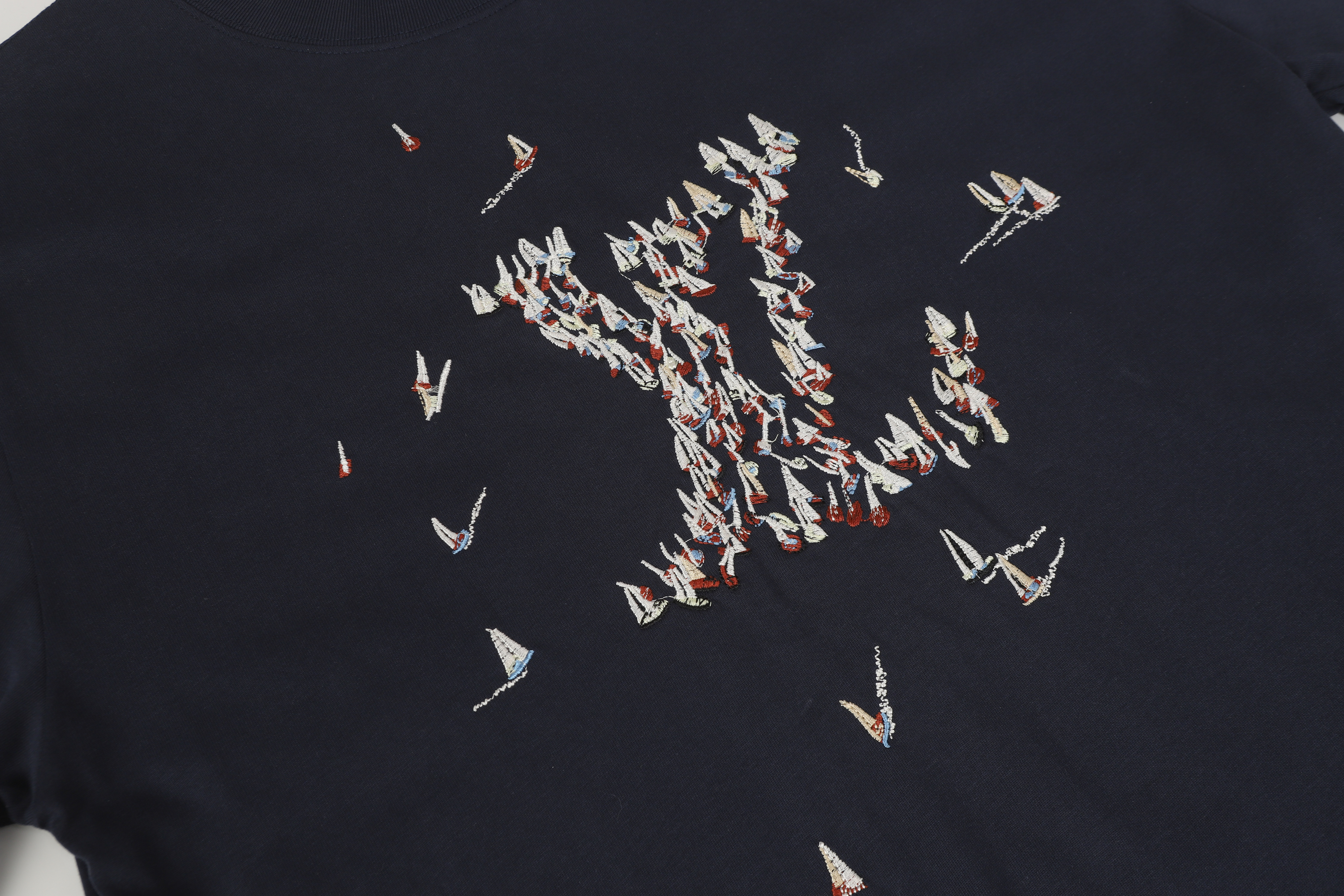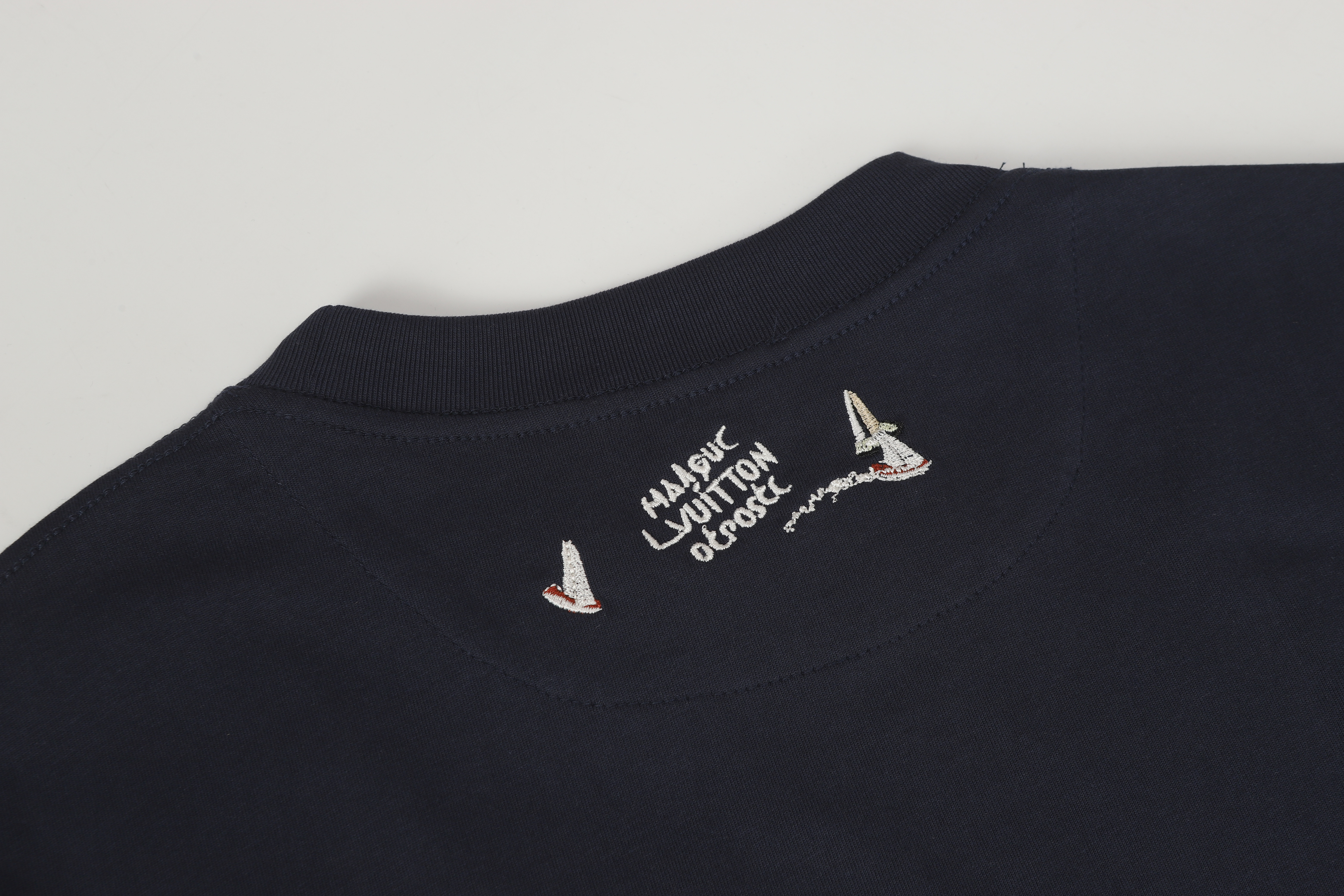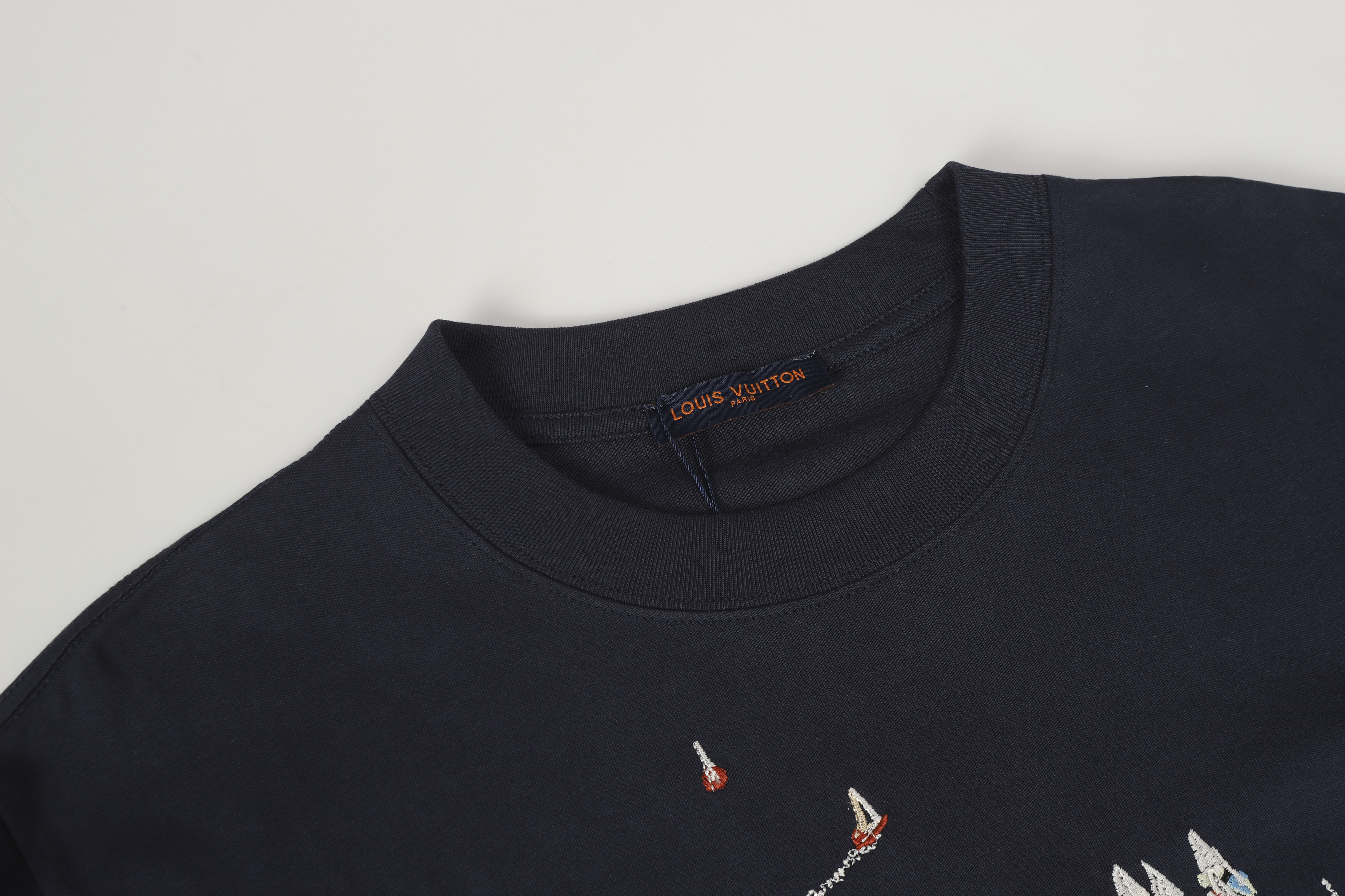 Louis Vuitton ルイ·ヴィトン T-Shirt シャツ 半袖Tシャツ メンズTシャツ クルーネック 刺繍 ブラック